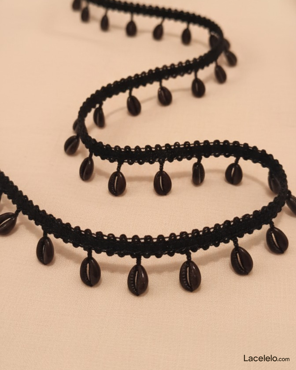 Stylish black kodi border lace ideal for sarees, kurtis, and ethnic crafts. Durable, elegant, and sold in a pack of 8 meters.