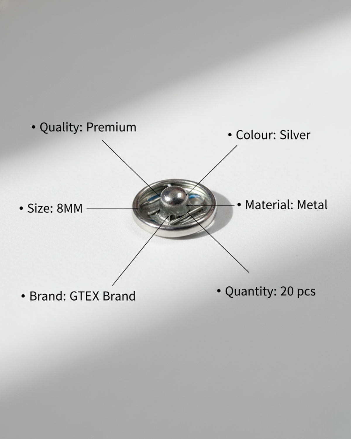 Premium-quality GTEX Brand metal chit buttons — 8MM size, rustproof, and long-lasting.
